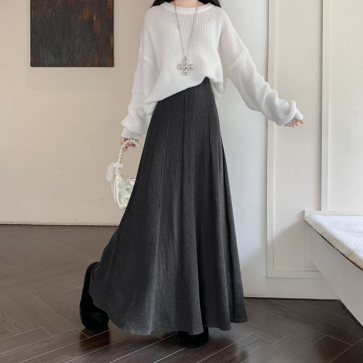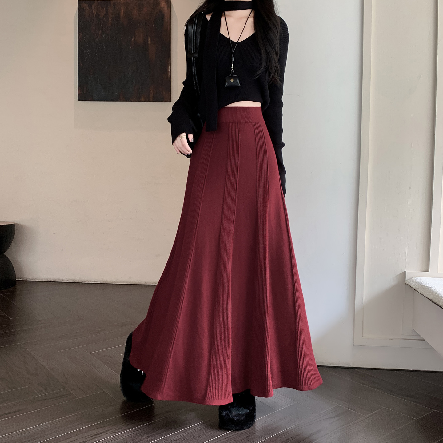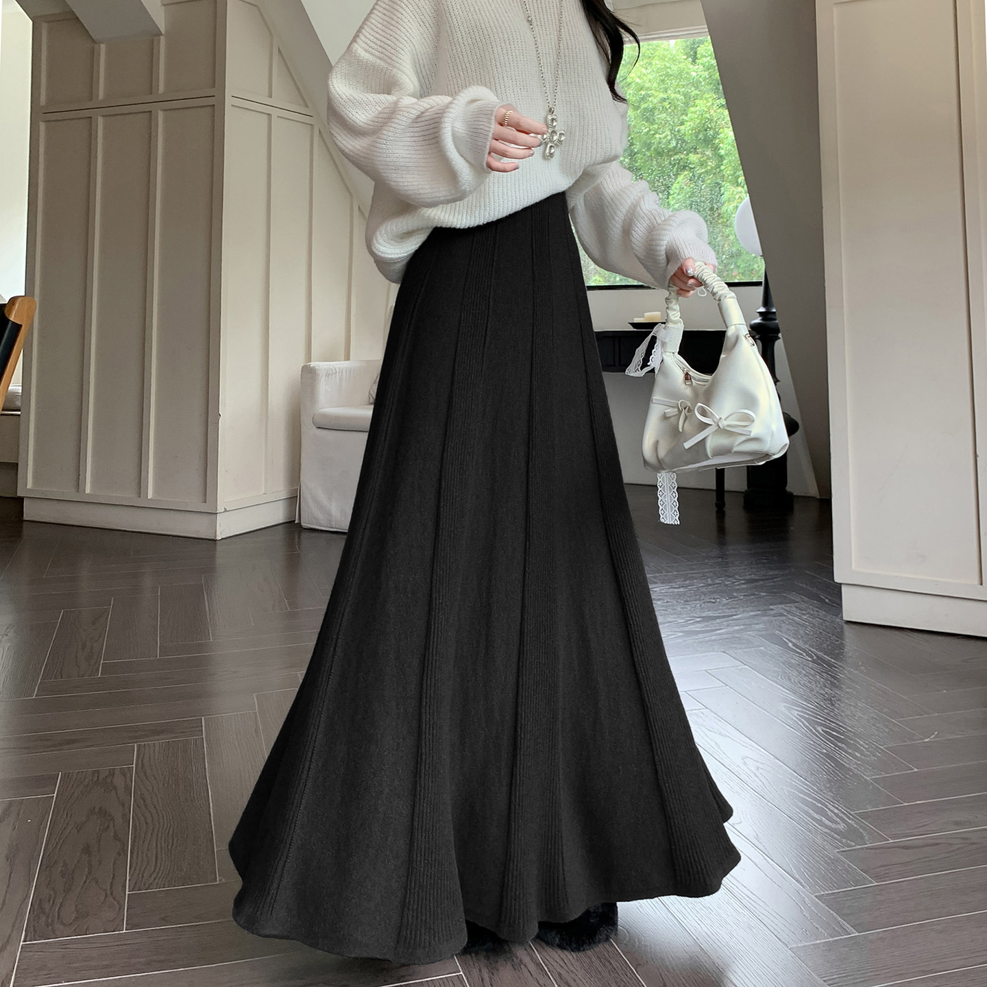 温柔风针织半身裙女2025秋冬新款高腰显瘦a字长裙子垂感大摆伞裙