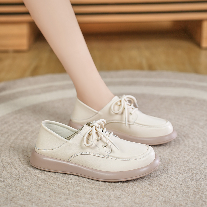系带小皮鞋女2025春季新款女鞋英伦风休闲软底乐福平底单鞋子皮鞋