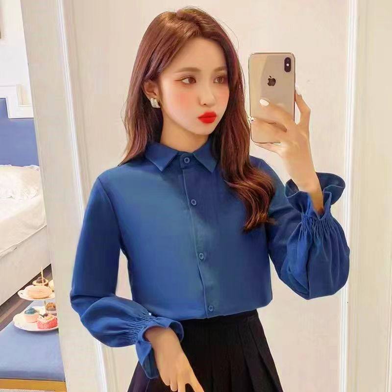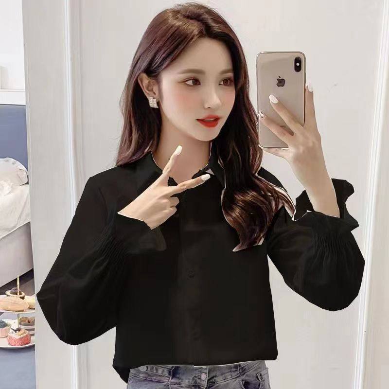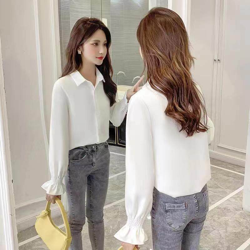 衬衫女设计感小众春秋百搭新款女人味衬衣外穿百搭喇叭长袖上衣服