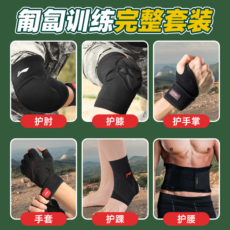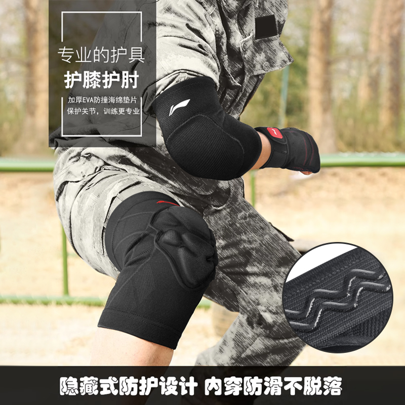 李宁护膝护肘战术爬行加厚户外训练内置跑障碍跪地防撞摔套装护具