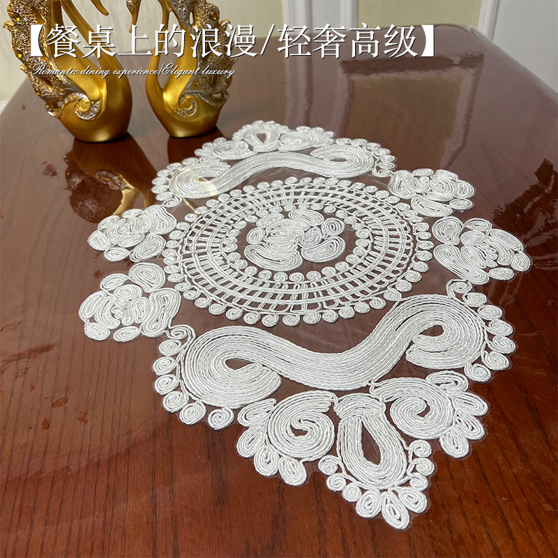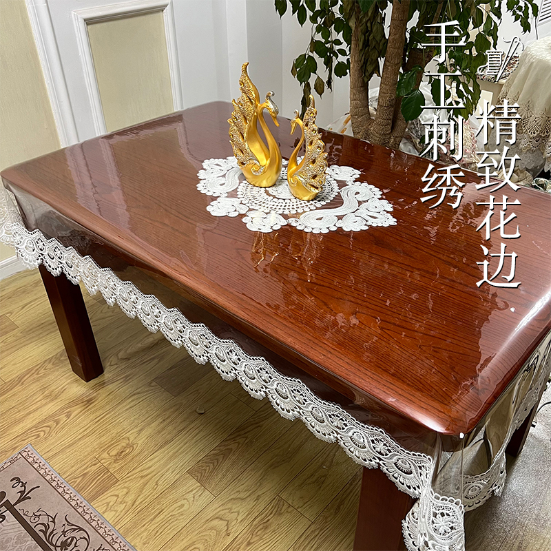pvc透明蕾丝软玻璃长方形桌布防滑免洗水晶板茶几餐桌垫抗皱防油
