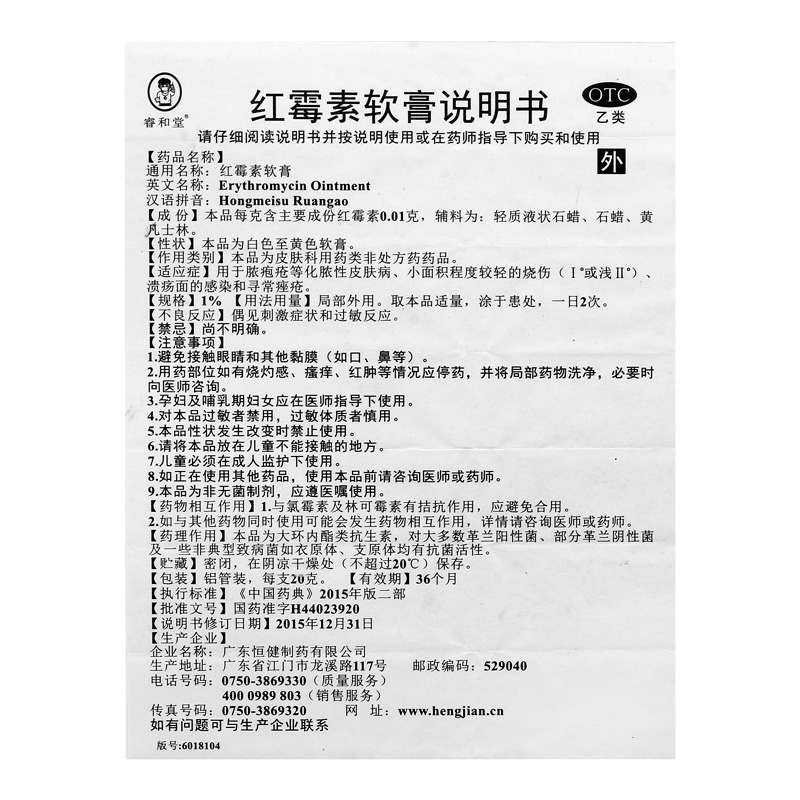 睿和堂红霉素软膏医用外用官方抗菌旗舰店正品消炎祛痘药房药膏