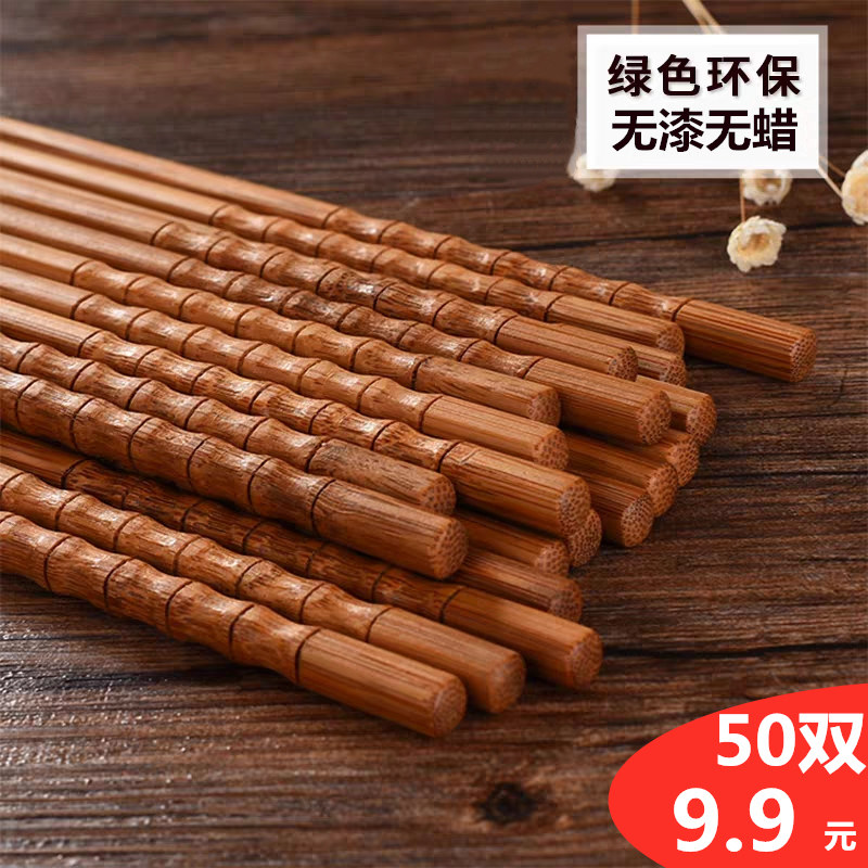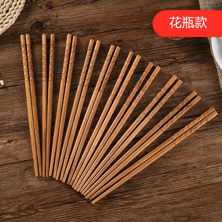 天然竹筷子家用家庭木筷子快子无漆无蜡防霉防滑高档雕刻竹筷