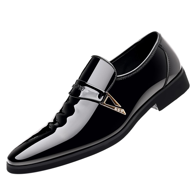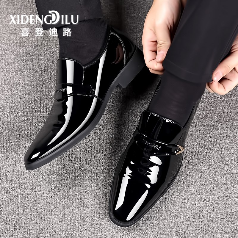 皮鞋男商务正装内增高韩版亮皮尖头夏季镂空英伦透气一脚蹬结婚鞋