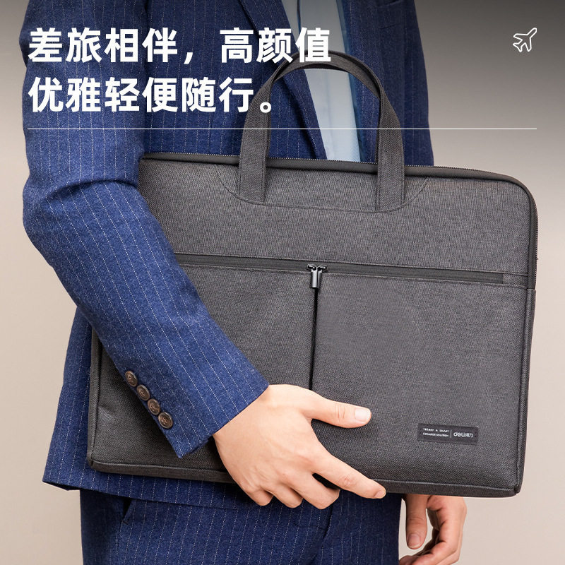 得力文件袋商务公文包帆布包a4加厚电脑包拉链资料袋多层防水手提袋男办公包文件会议大容量办公用品收纳定制