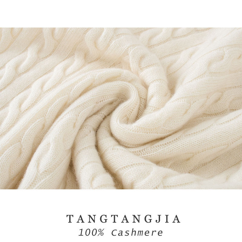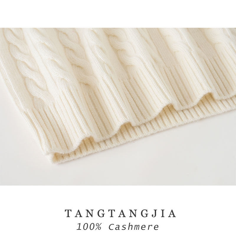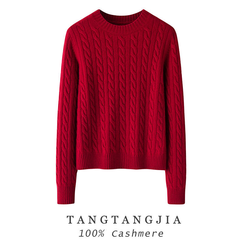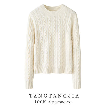 鄂尔多斯市女士绞花加厚圆领羊绒套衫秋冬通勤保暖针织打底羊毛衫