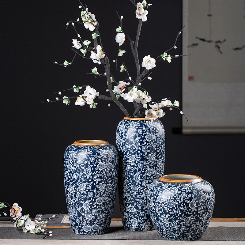 景德镇陶瓷花瓶青花系列中式插花水养干花花瓶摆件