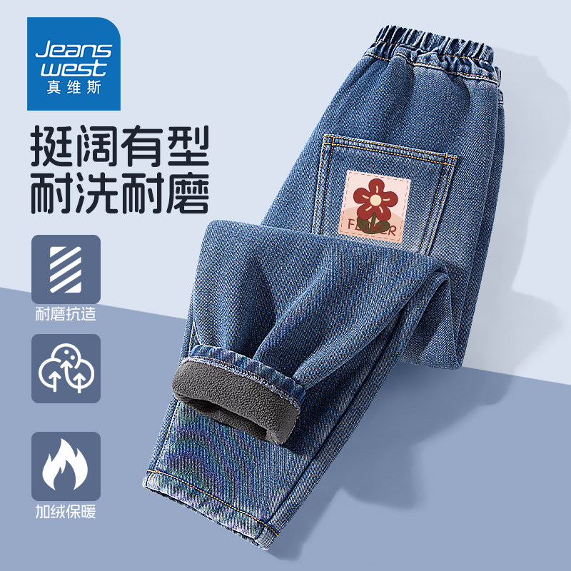 真维斯童装女童加绒牛仔裤秋冬款儿童休闲长裤女大童加厚保暖裤子