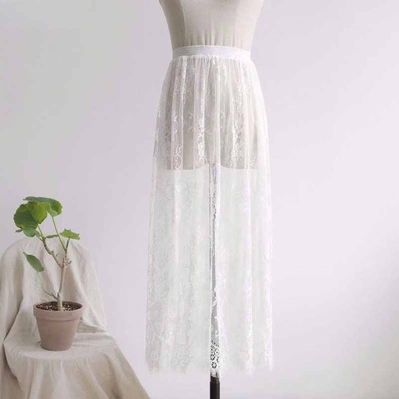 白色内搭衬裙蕾丝半身裙长款网纱大码百搭旗袍搭配黑色旗袍裙时尚