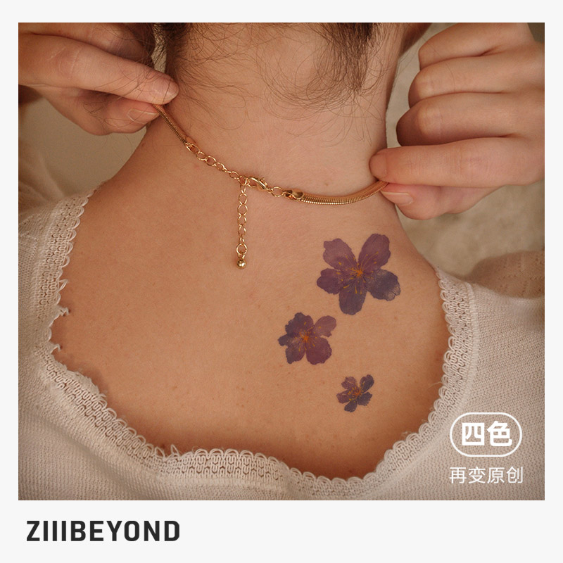 再变 紫粉花彩色纹身贴新品防水清新水彩可爱田园组合纹身贴纸