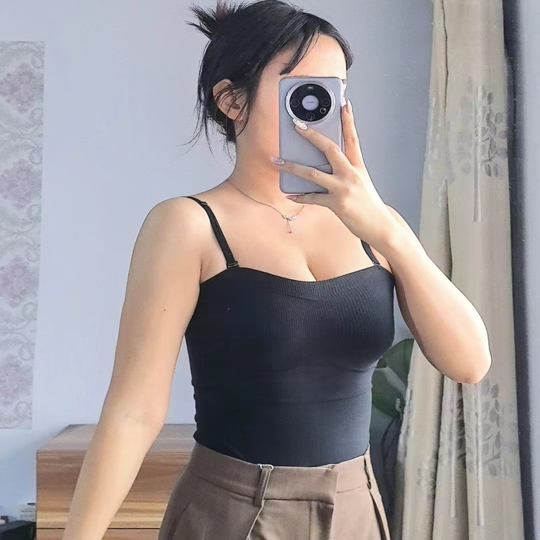 大码背心美背文胸一体吊带女内搭女秋冬内衣胸垫文胸下垂聚拢遮肚