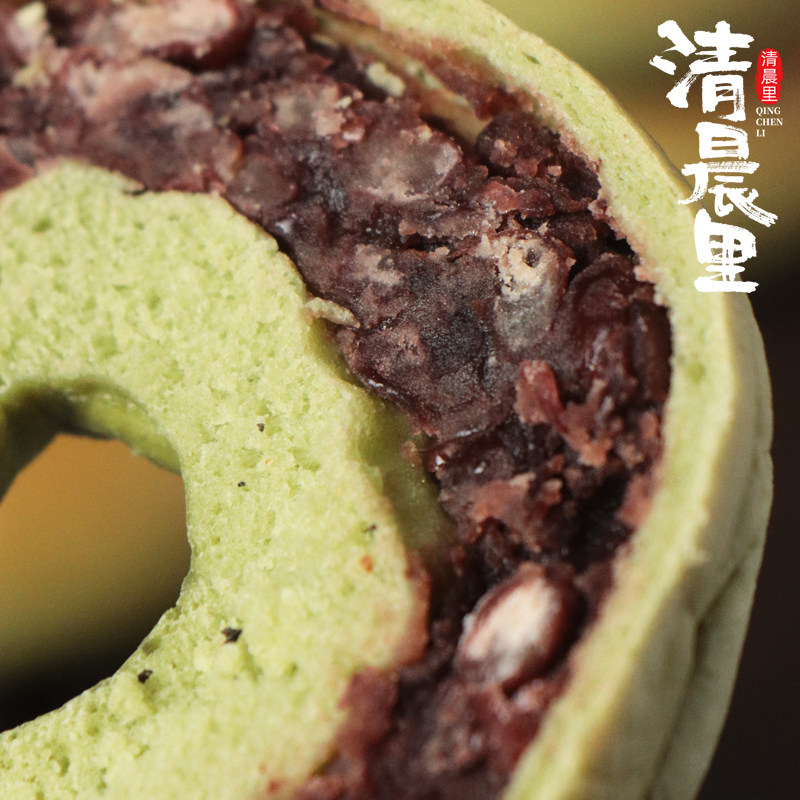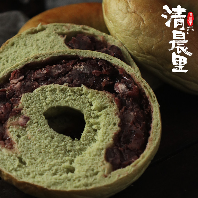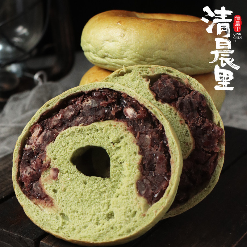 清晨里贝果抹茶红豆面包