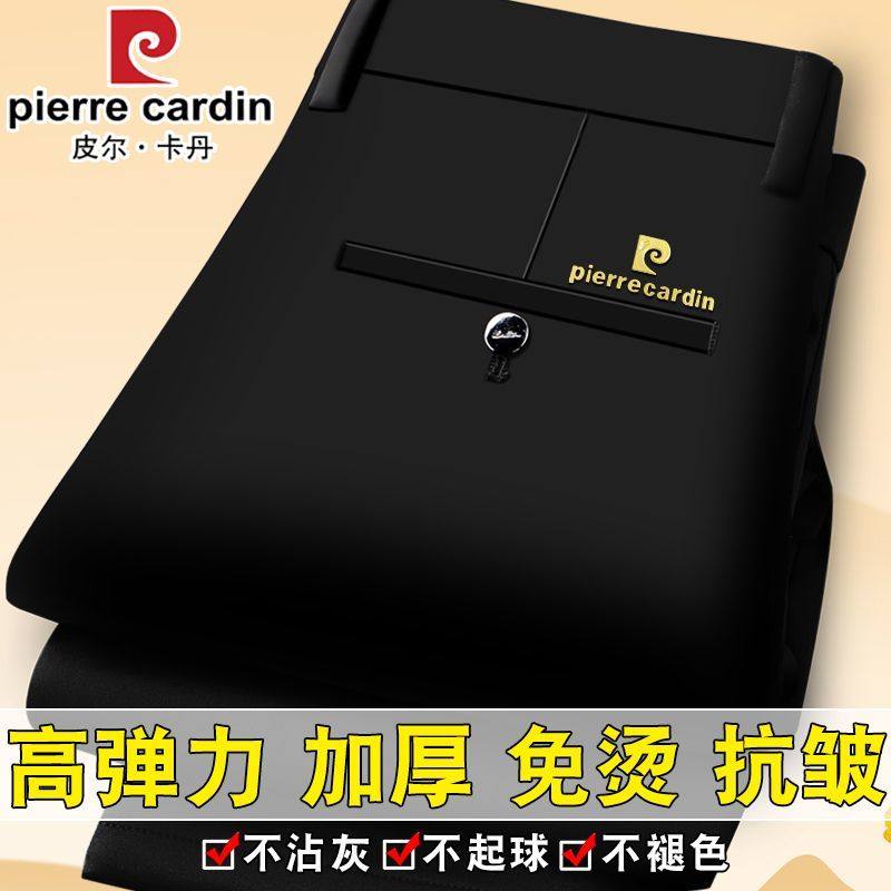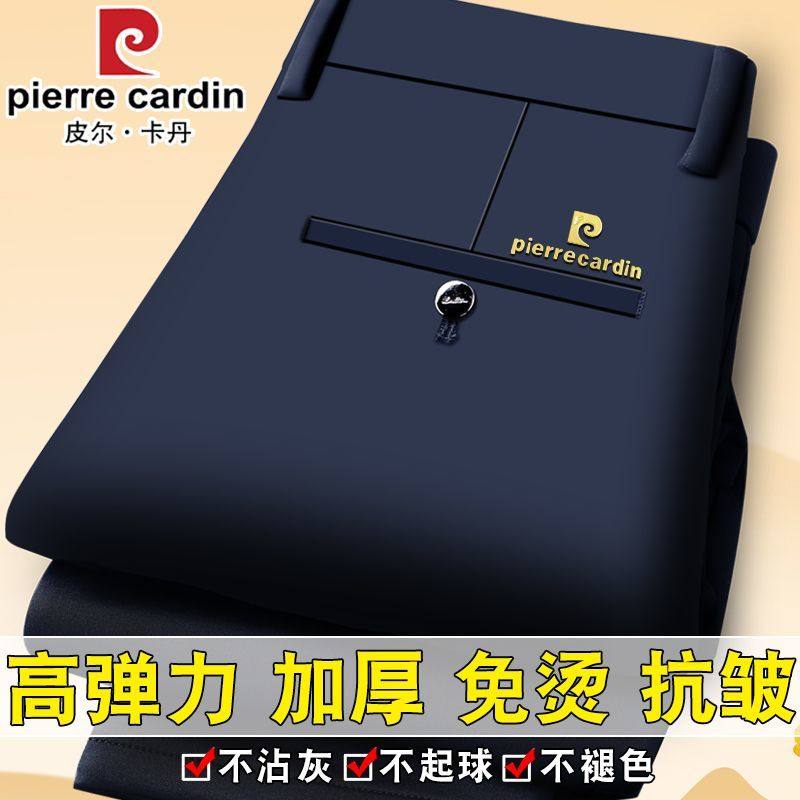 皮尔卡丹正品加绒加厚男士休闲裤免烫抗皱高弹力舒适柔软高腰长裤