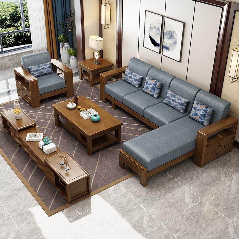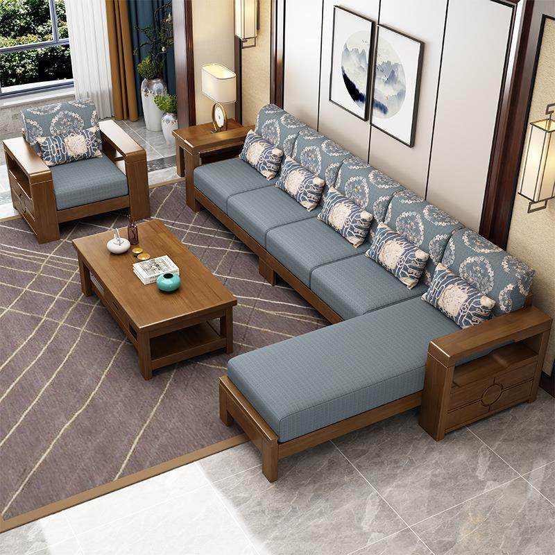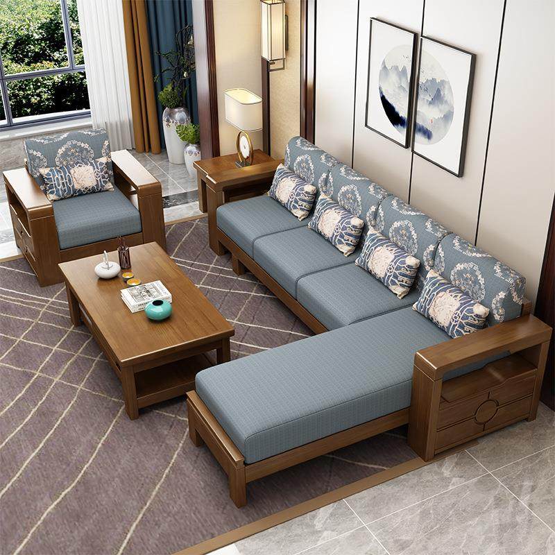 OQ5M新中式全实木沙发组合布艺转角贵妃单三人位拉床现代客厅