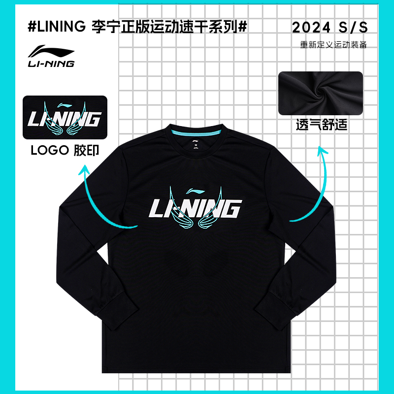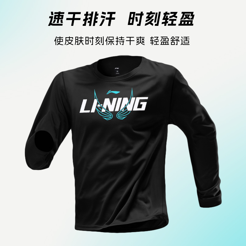 李宁速干长袖t恤男投篮服薄款防晒上衣运动跑步健身训练篮球打底