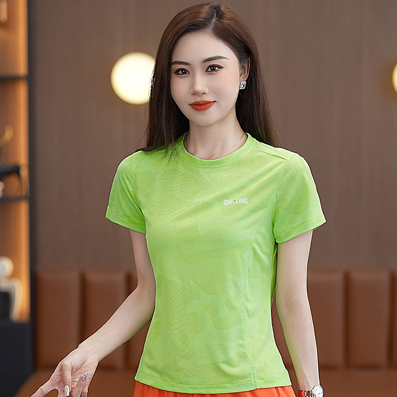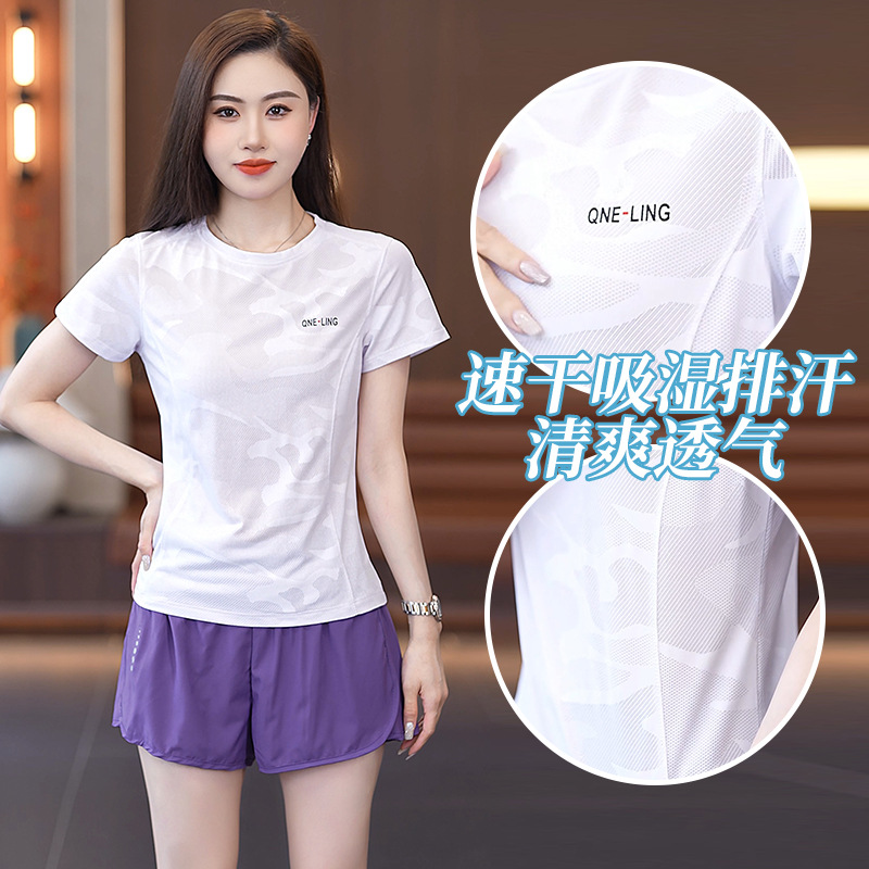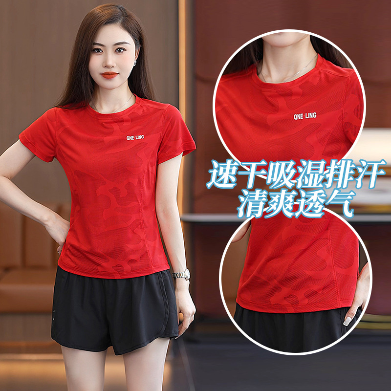 2025广场舞蹈服夏季新款冰丝T恤女休闲健身跑步跳操速干短袖上衣