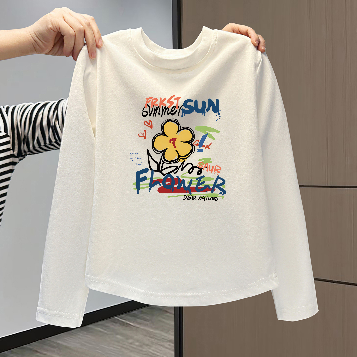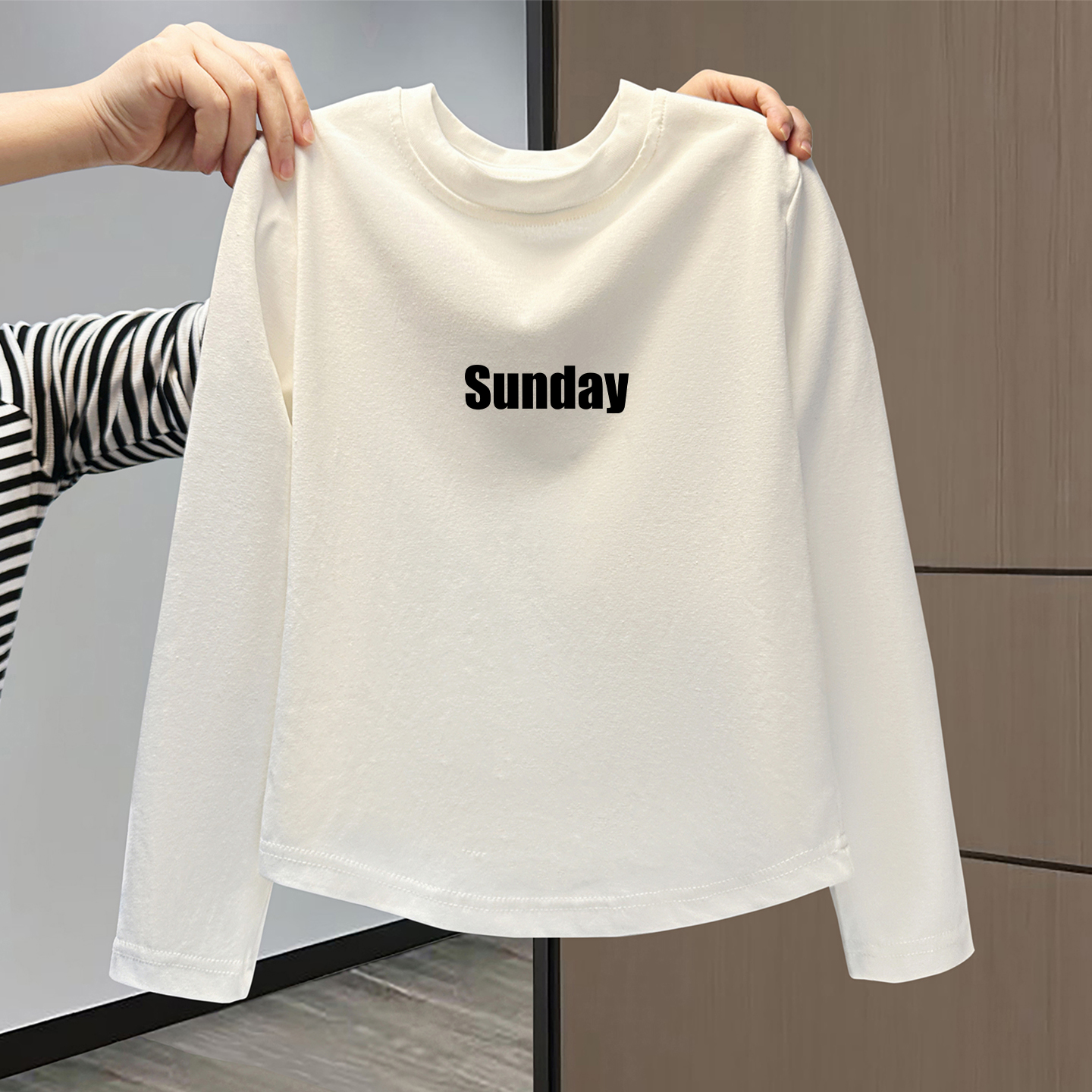 儿童宝宝纯棉白色长袖T恤洋气