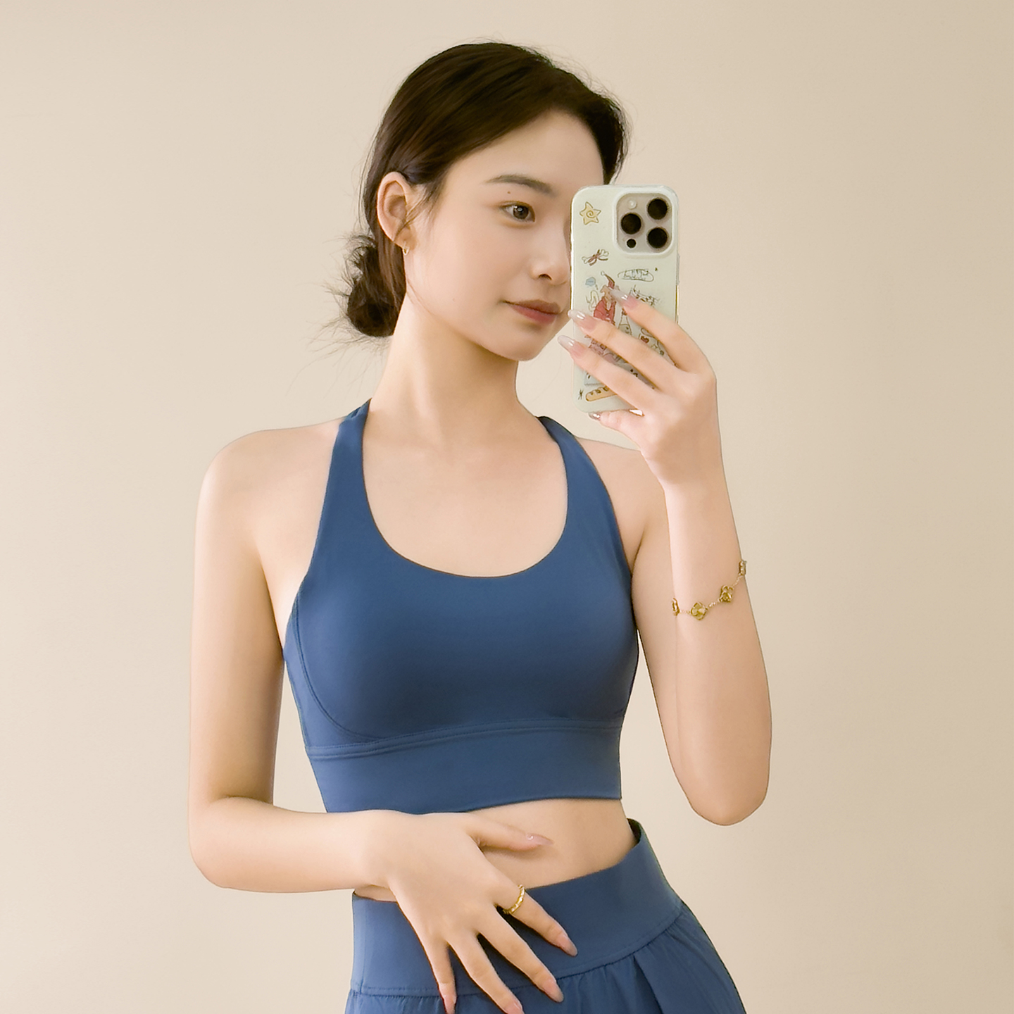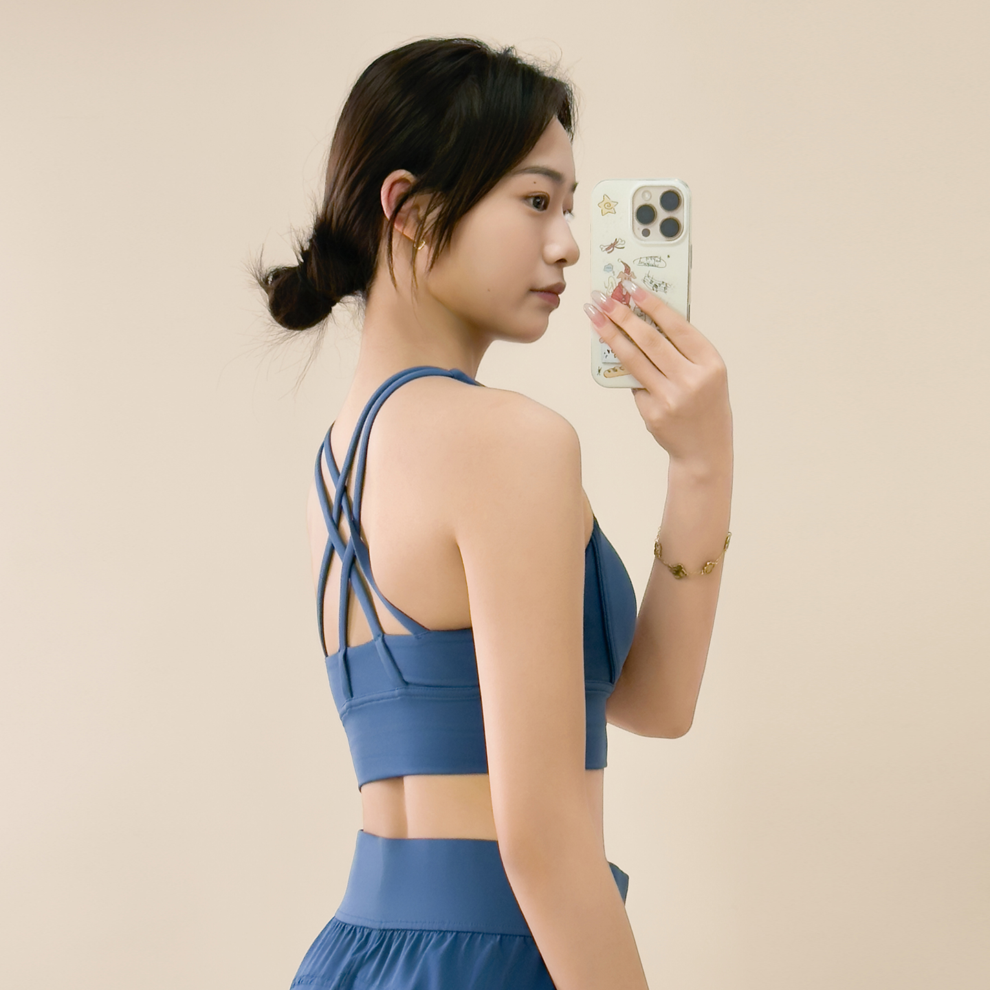 蓝小可Blue新裸感瑜伽服背心女减震文胸运动内衣交叉美背健身上衣