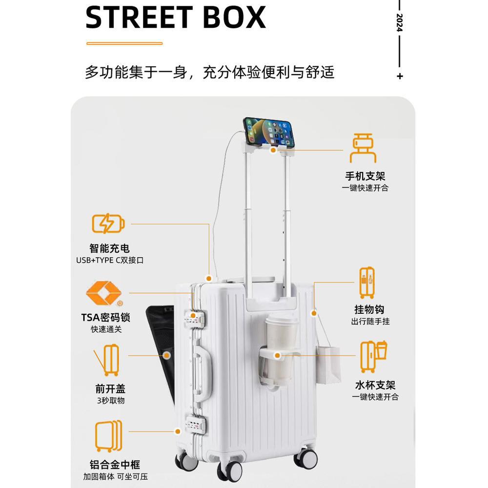 铝框前开口行李箱万向轮静音女拉杆箱商务20寸登机箱男24寸旅行箱