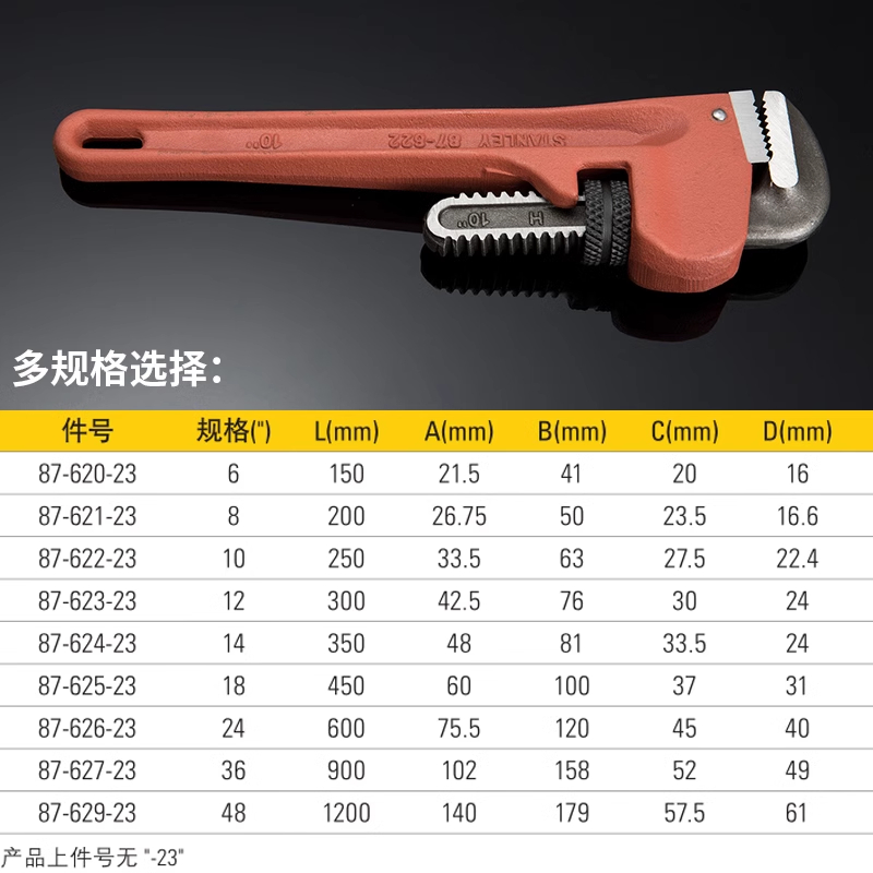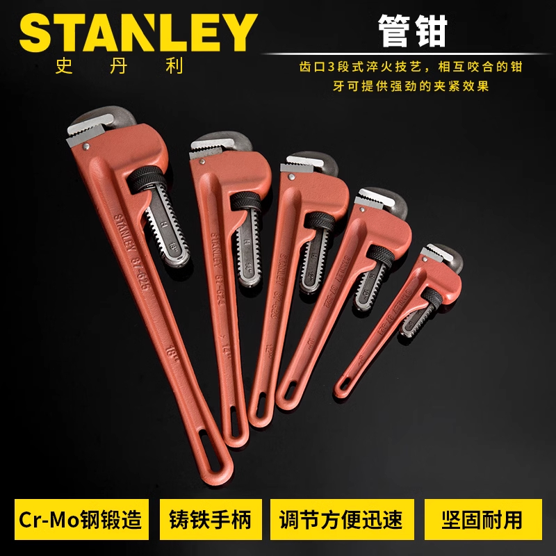 史丹利6/8/10/12/18/24/36/48寸铝合金水管钳重型圆管钳87-620-23