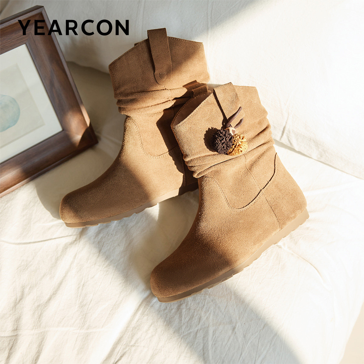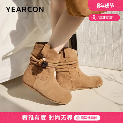 意尔康加绒勃肯短靴2025冬季新款平底美拉德靴子显示堆堆靴女靴