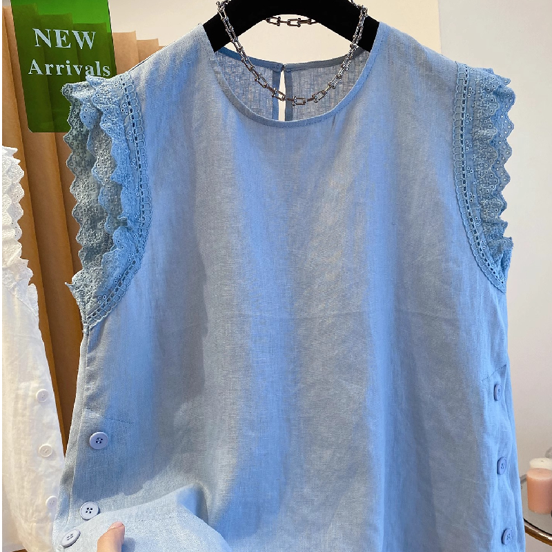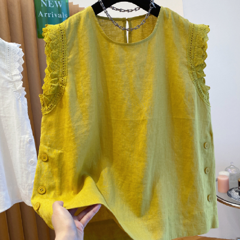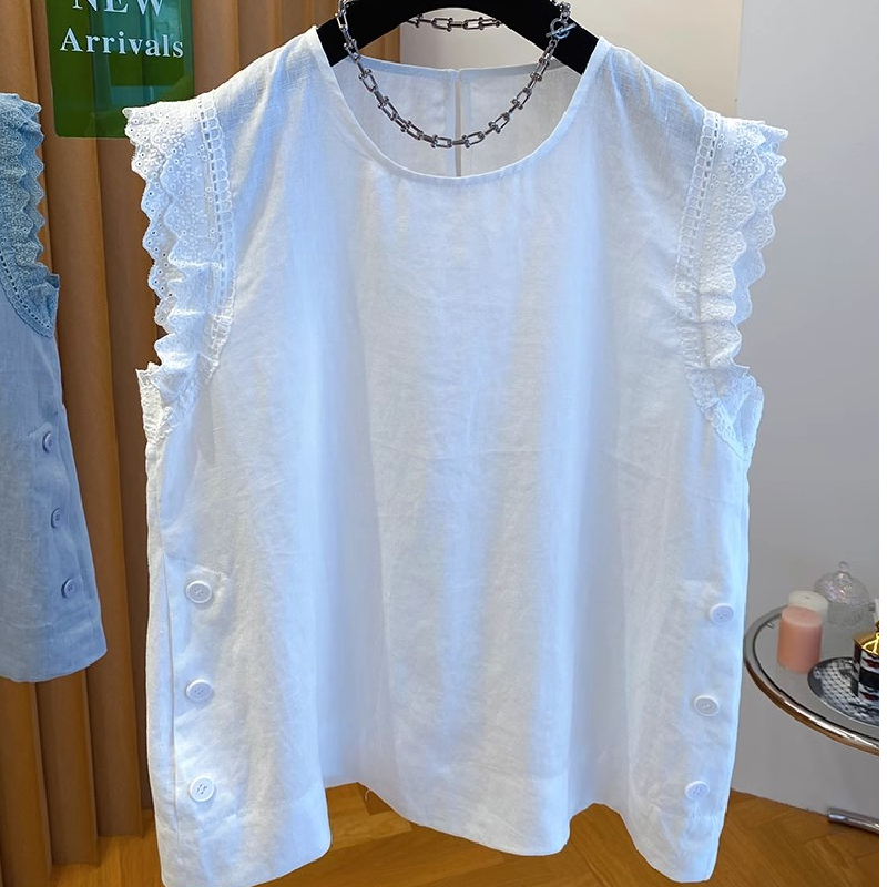 胖妹妹200斤大码别致飞飞袖蕾丝木耳边衬衫背心女夏显瘦无袖上衣