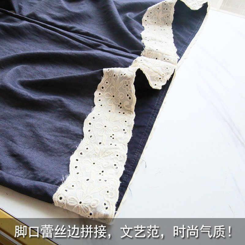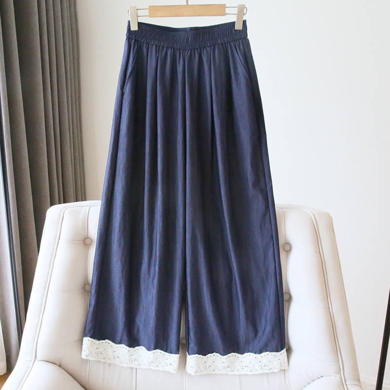 蕾丝边牛仔阔腿裤宽松薄款九分裤