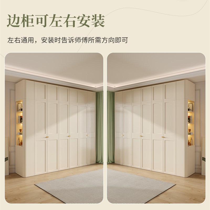 法式奶油风衣柜卧室平开门柜子小户型衣柜家用卧室实木大衣橱现代