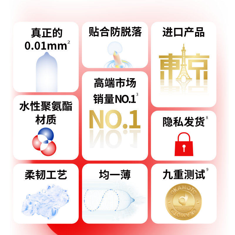 冈本聚氨酯001避孕套10片装安全超薄超润男用延时安全套套byt