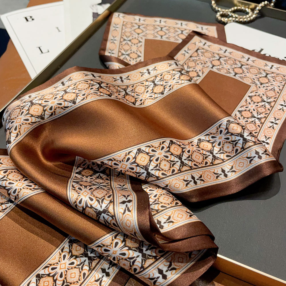 气质百搭真丝丝巾小长条100%桑蚕丝双面春秋时尚围巾韩国小领巾女