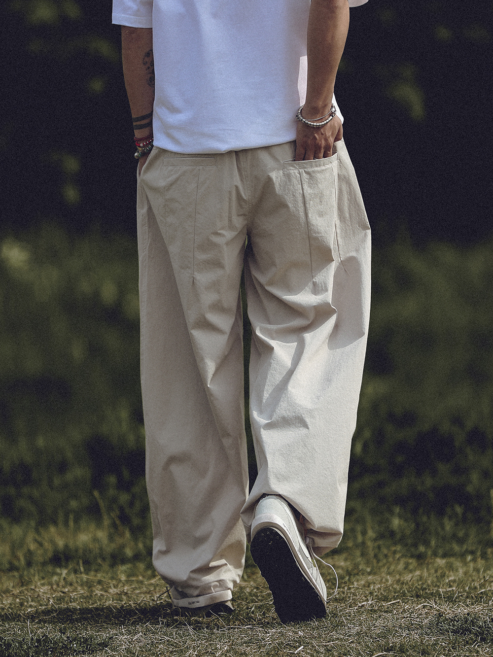 AboutPlanB夏季新款宽松薄款阔腿裤休闲百搭束脚长裤纯色九分裤男