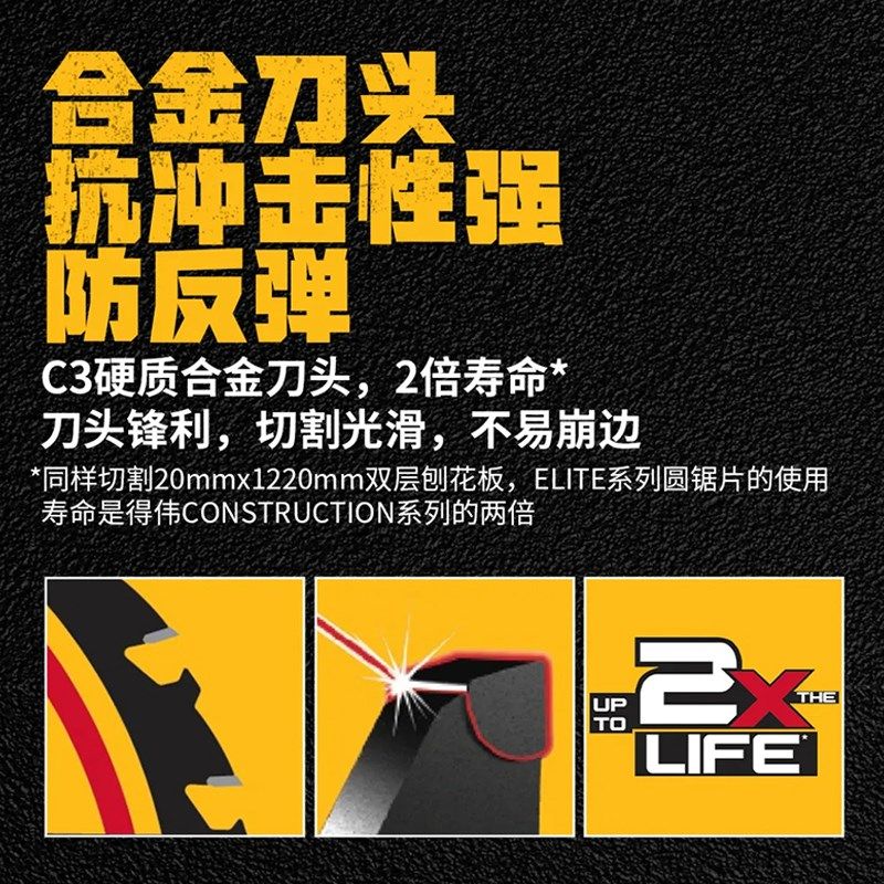 Dewalt得伟木工合金片电动圆锯片硬质合金锯片家用木材切割片