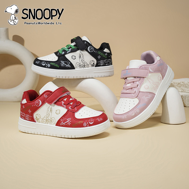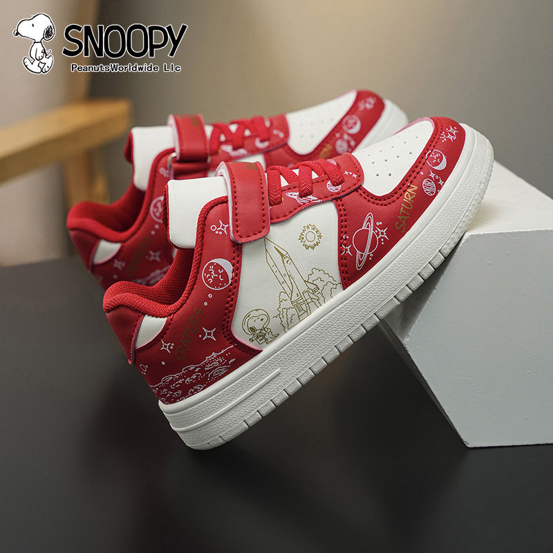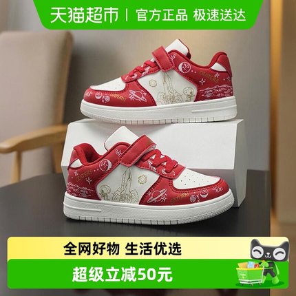 史努比童鞋男童板鞋低帮四季女童鞋子儿童运动鞋中国红休闲滑板鞋