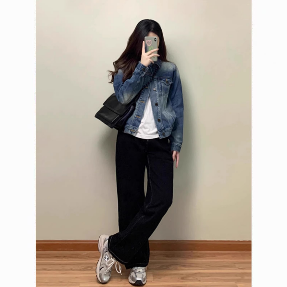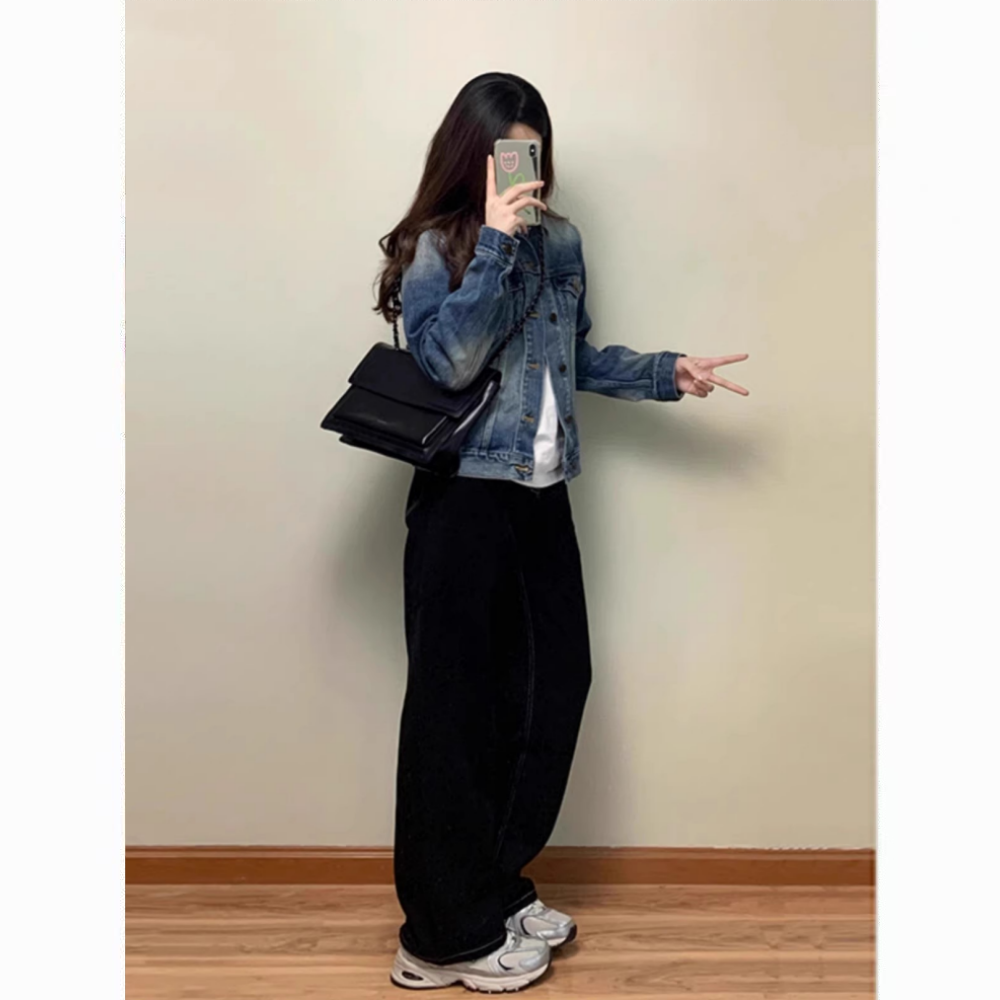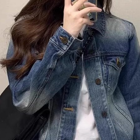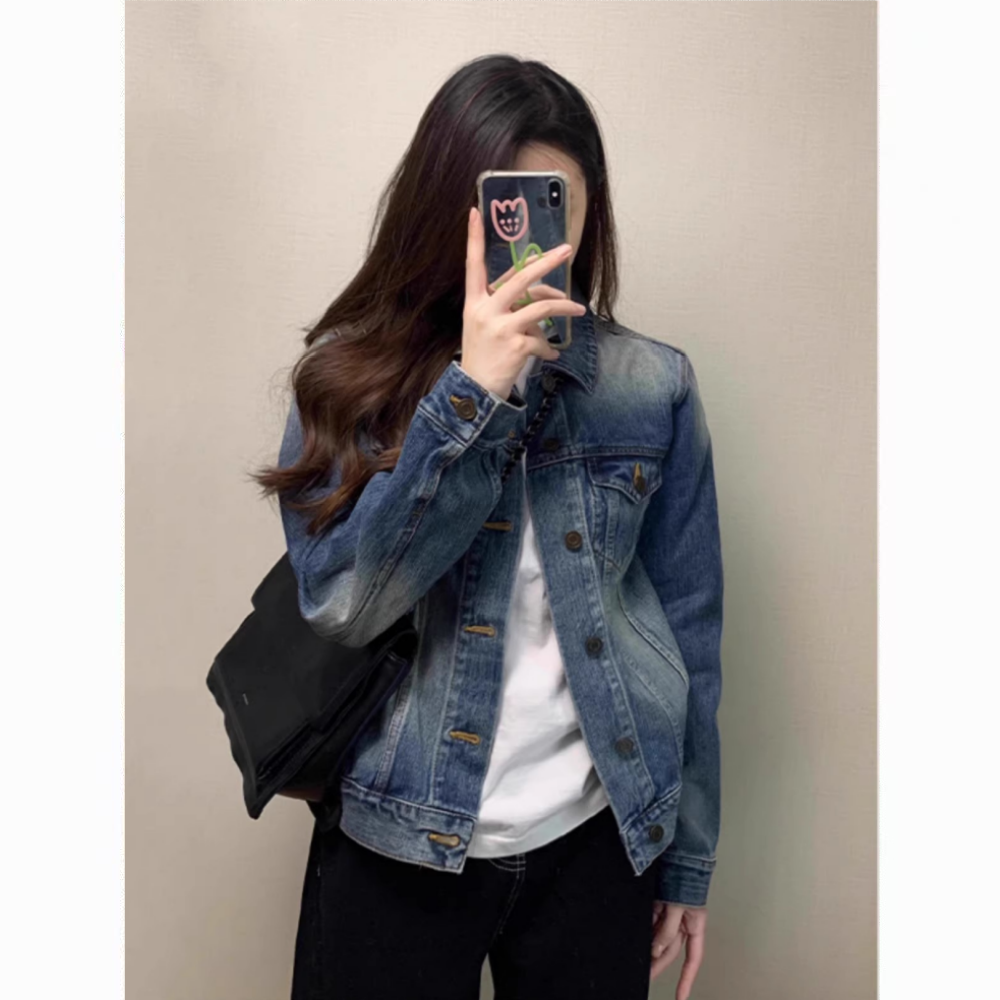 美式复古水洗做旧牛仔外套女春秋宽松慵懒chic小个子短款上衣夹克