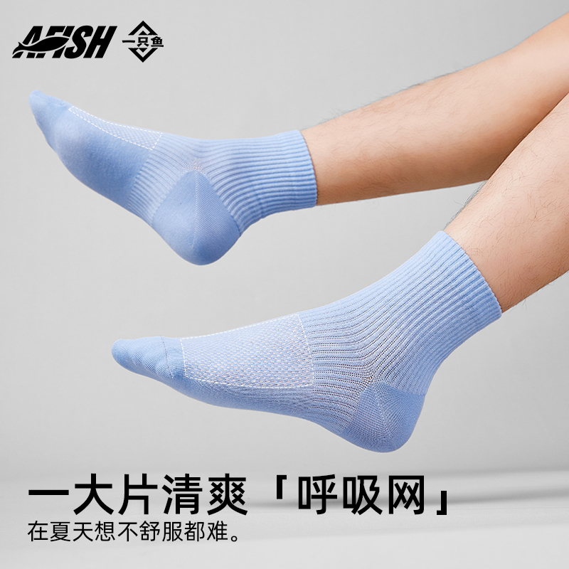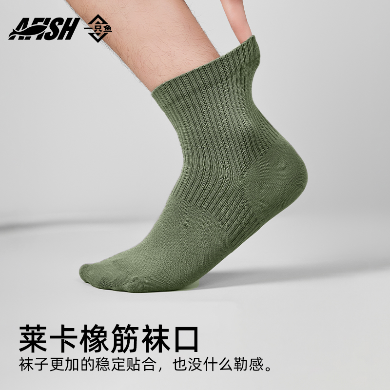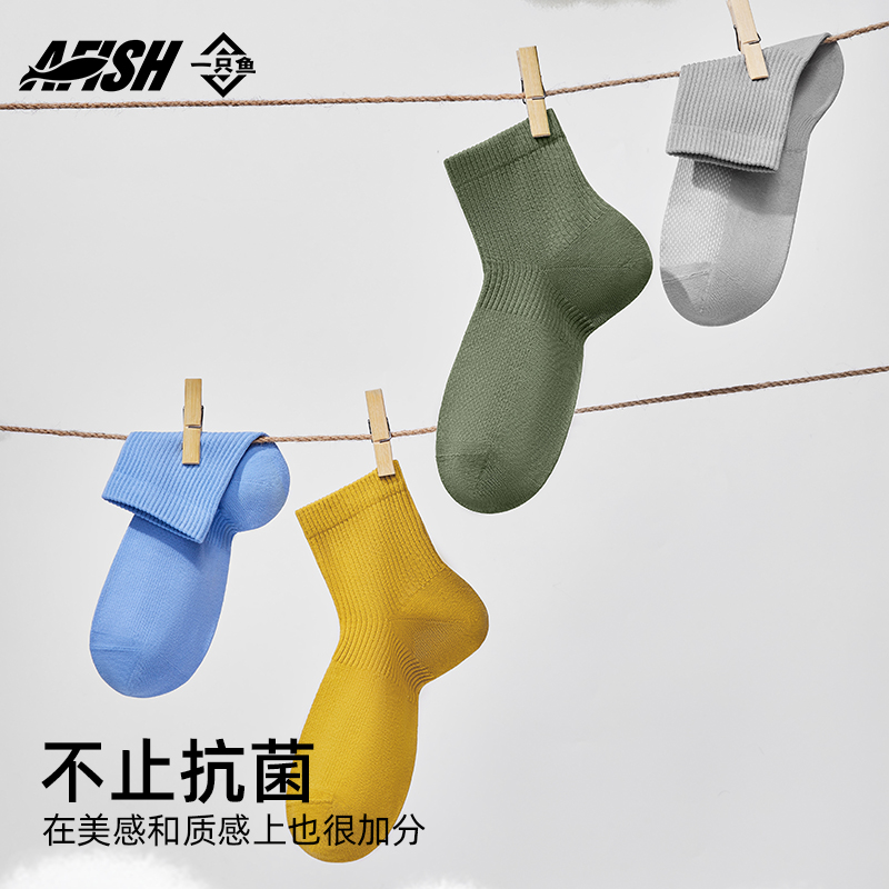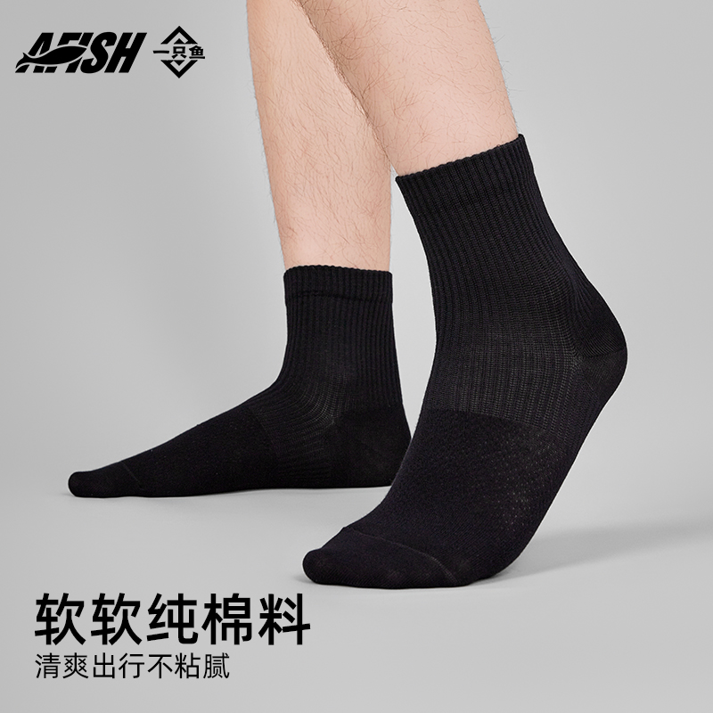【100%纯棉】一只鱼袜子男款纯棉春秋四季短筒防臭防脚气运动吸汗
