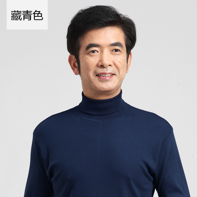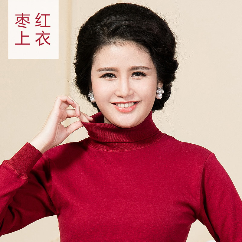 中老年秋衣单件上衣中圆低领棉毛衫男女士纯棉全棉半高领白色上衣