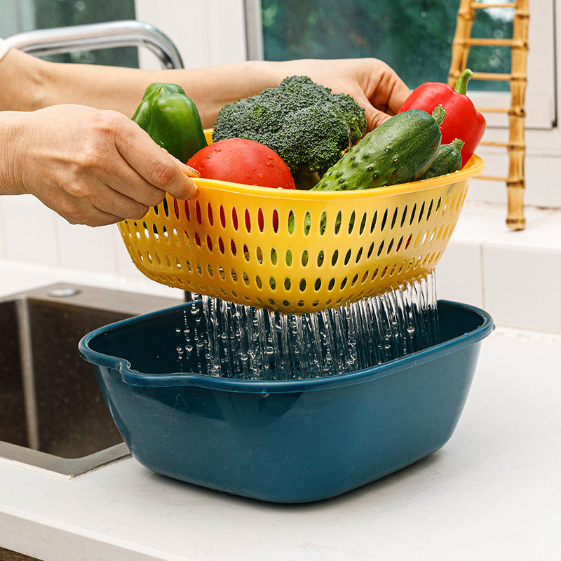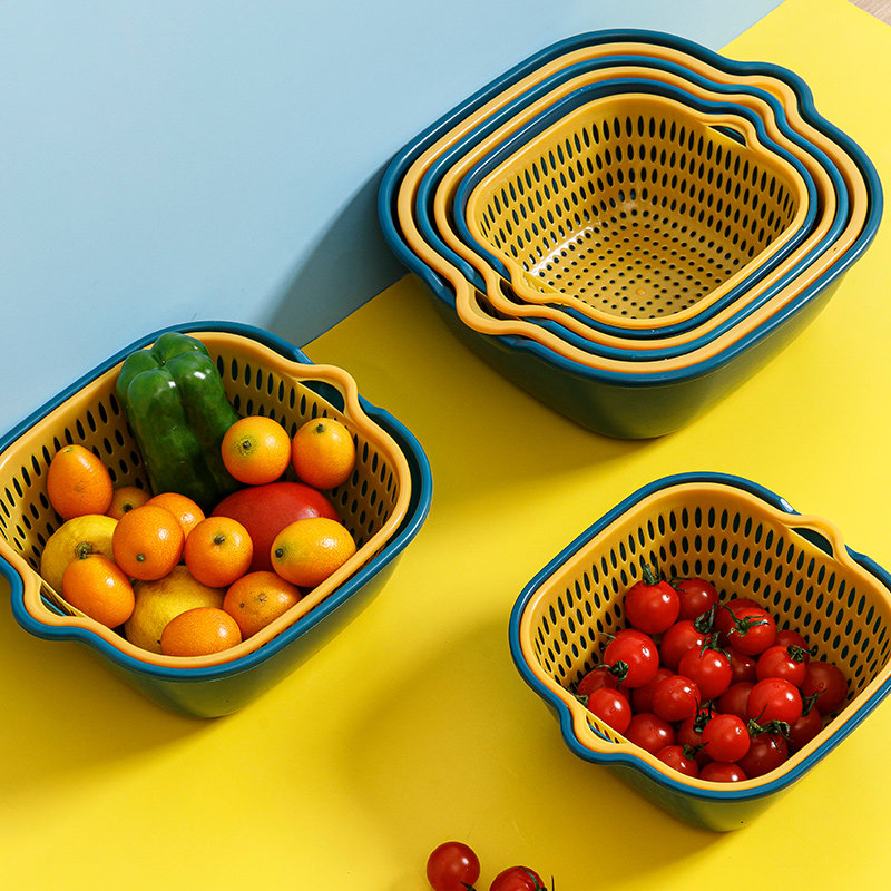 4件套双层镂空洗菜盆沥水篮厨房收纳多功能家用水果盘洗水果菜篮