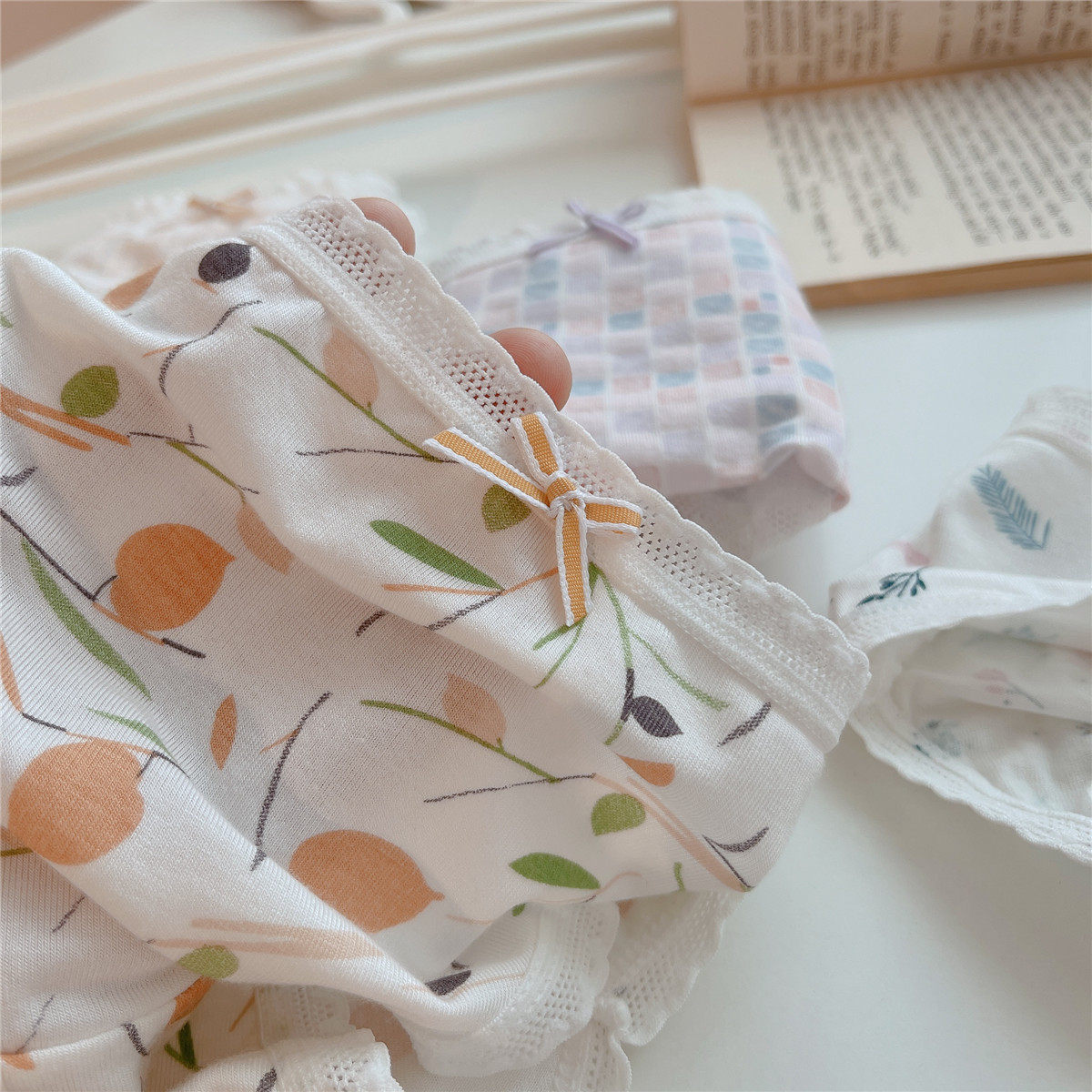 4条薄款速干抗菌碎花莫代尔内裤女无痕中腰文艺少女学生三角裤头