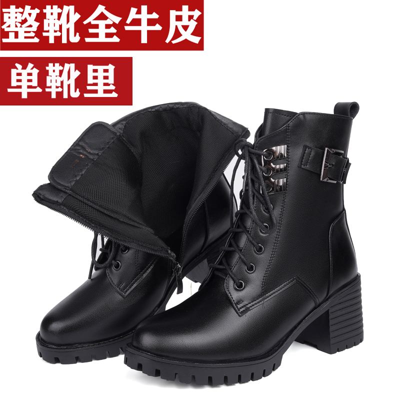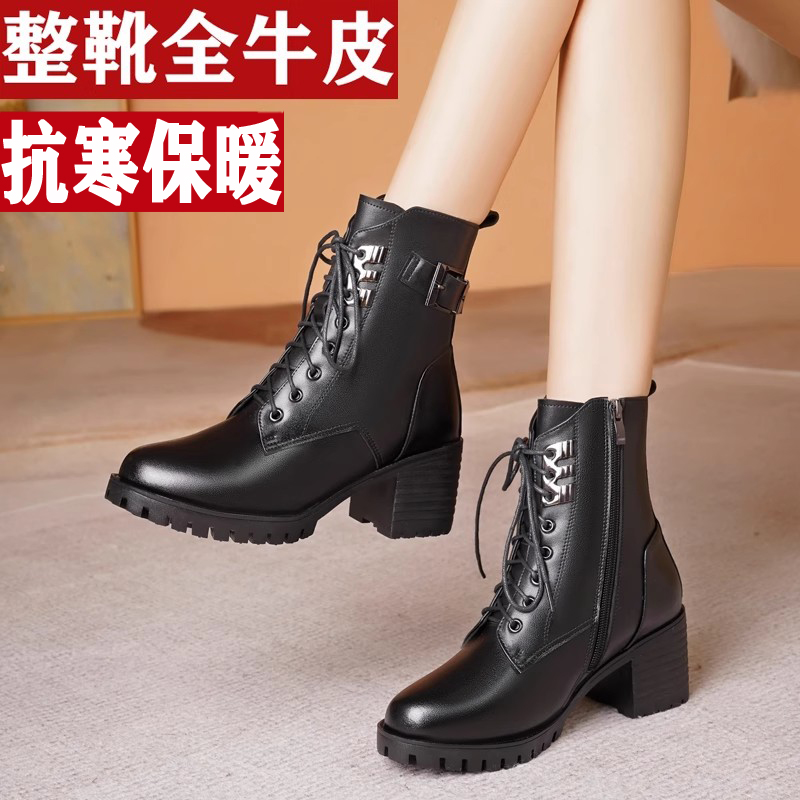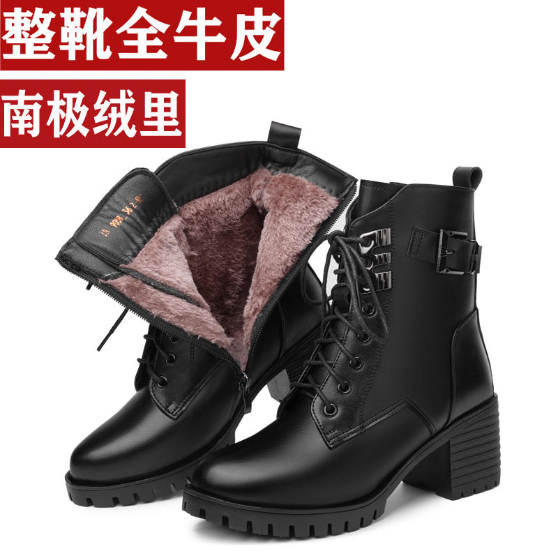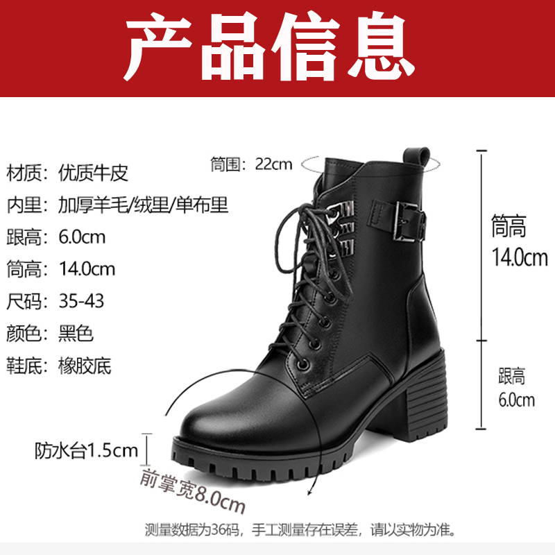 女款真皮马丁靴女鞋皮毛一体靴子女士羊毛棉鞋女短靴高跟加绒皮鞋