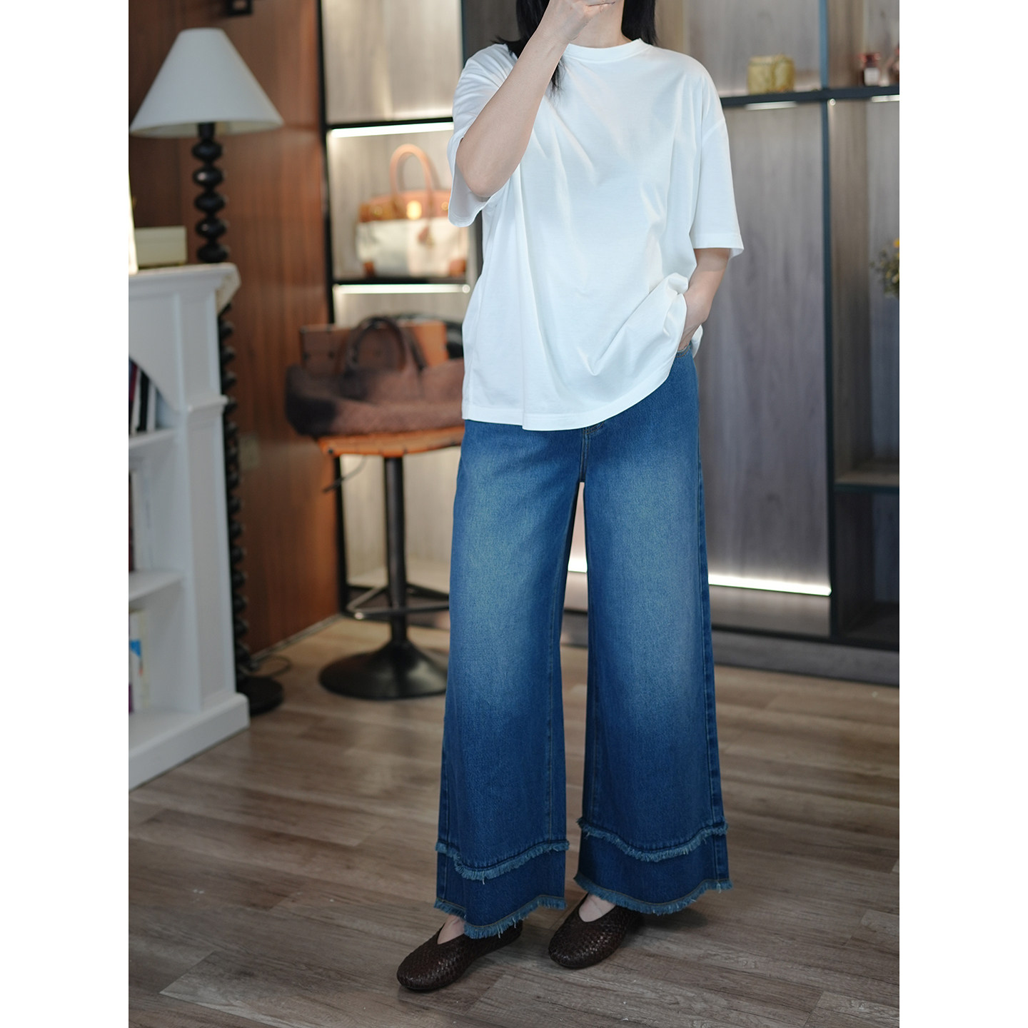6号衣橱 l 26早春小狗出品 软垂莱赛尔醋酸丹宁流苏拼接9分牛仔裤