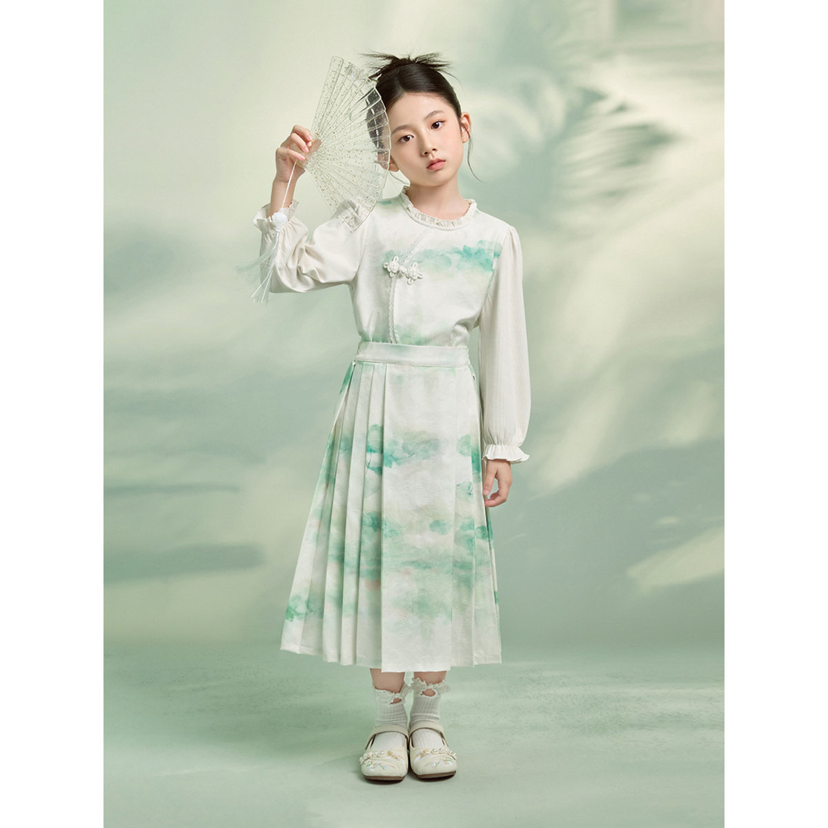 minipeace太平鸟童装女童马面裙儿童新中式汉服古风秋装只此青绿