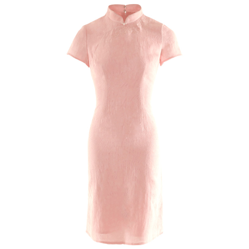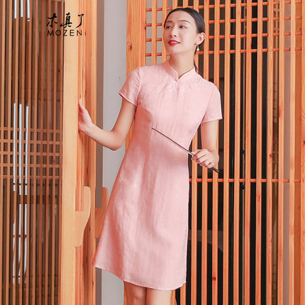 木真了改良复古亚麻连衣裙夏新品中式修身A摆日常棉麻女裙312