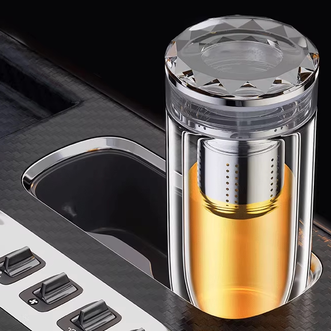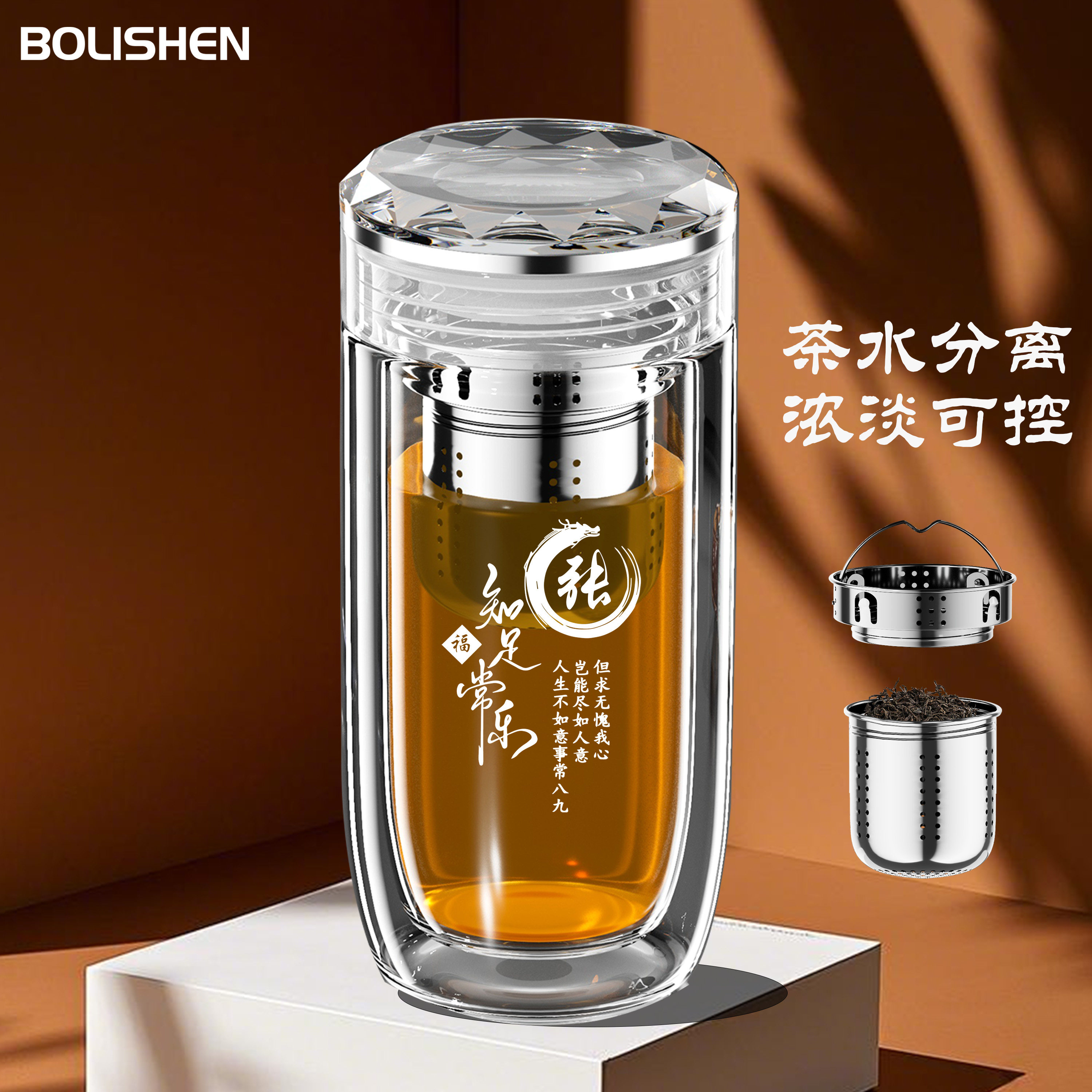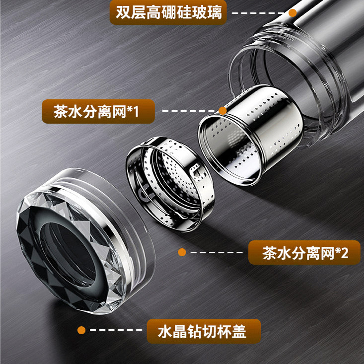鹅蛋杯双层玻璃杯男士定制百家姓车载商务办公杯茶水分离水晶茶杯