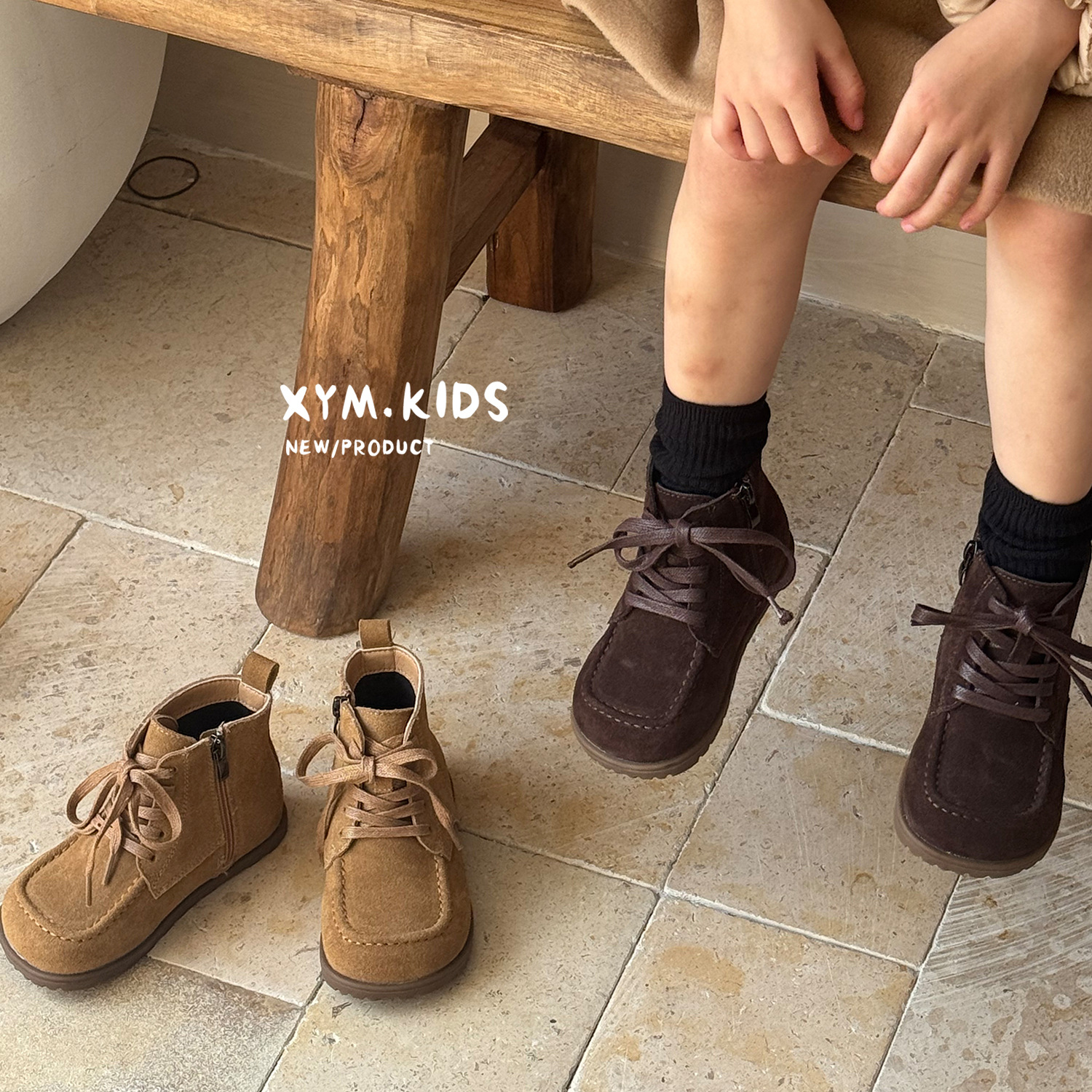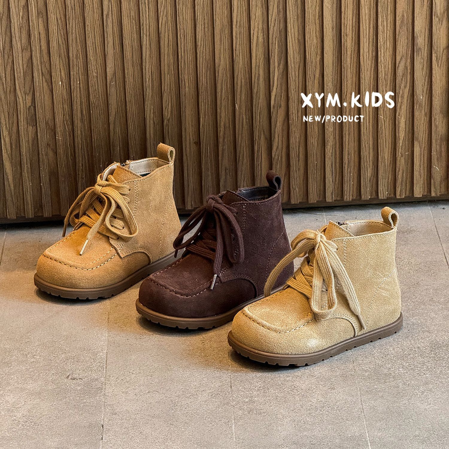 2025年秋新款儿童复古磨砂真皮勃肯短靴软底男女童时尚英伦小童靴