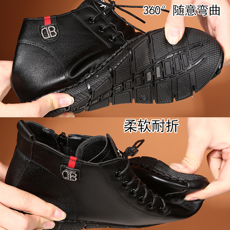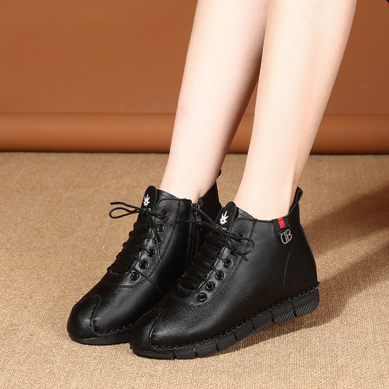 高帮鞋女2025秋季新款真皮圆头系带小短靴平底运动休闲鞋手工单靴