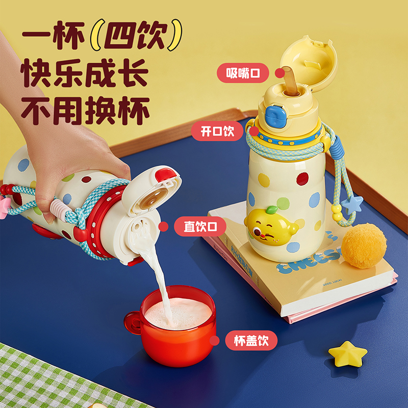 物生物保温杯儿童316L不锈钢高颜值女杯子小学生上学专用吸管水杯