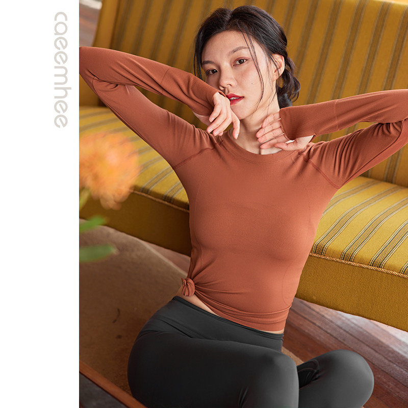 卡益瑜伽服女秋冬一体织长袖健身上衣专业高端时尚普拉提训练服女