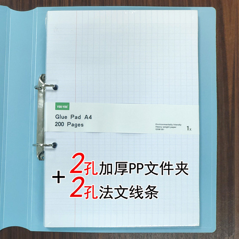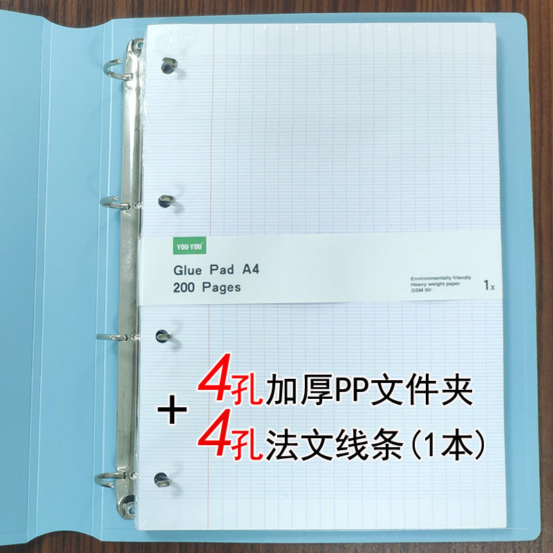 法国A4加厚升级90克2孔4孔胶装活页线圈本法文本线条法语本文件夹