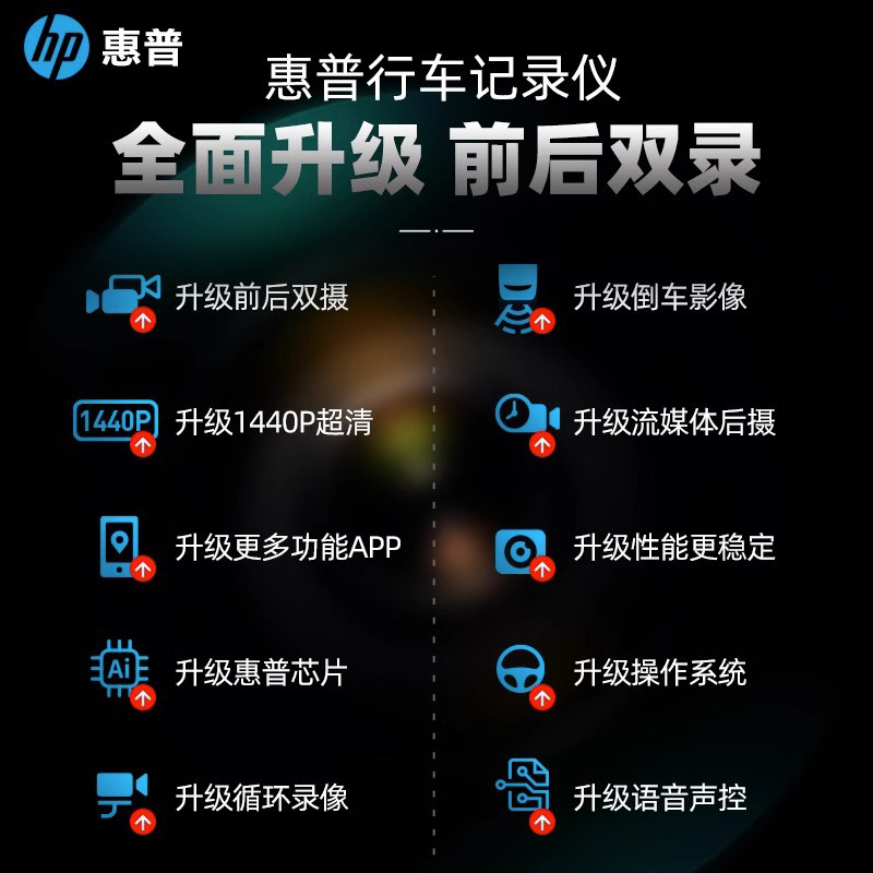 惠普超高清前后双摄行车记录仪