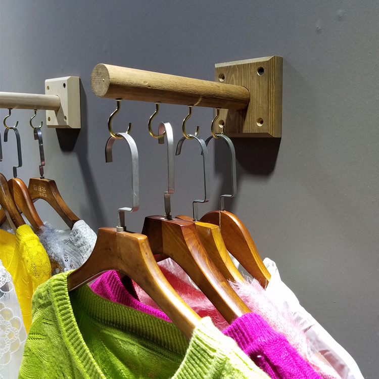服装店长挂钩上墙点挂 挂衣钩墙挂展示架 衣架单钩壁挂 实木货架